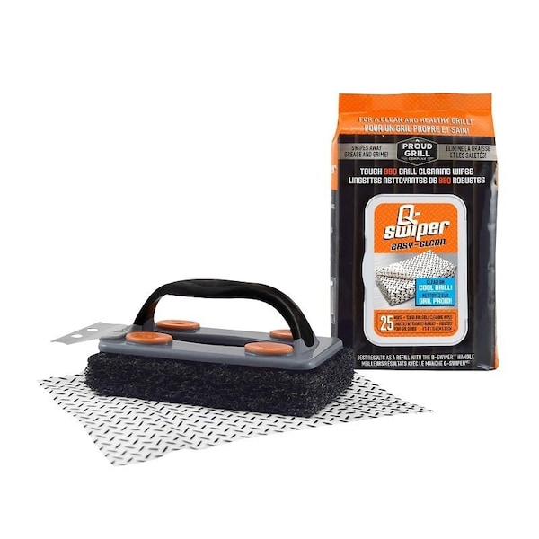 Proud Grill Cleaner Kit, Includes: 1 Q-Swiper BBQ Brush, 25 Q-Swiper Grill Cleaning Wipes