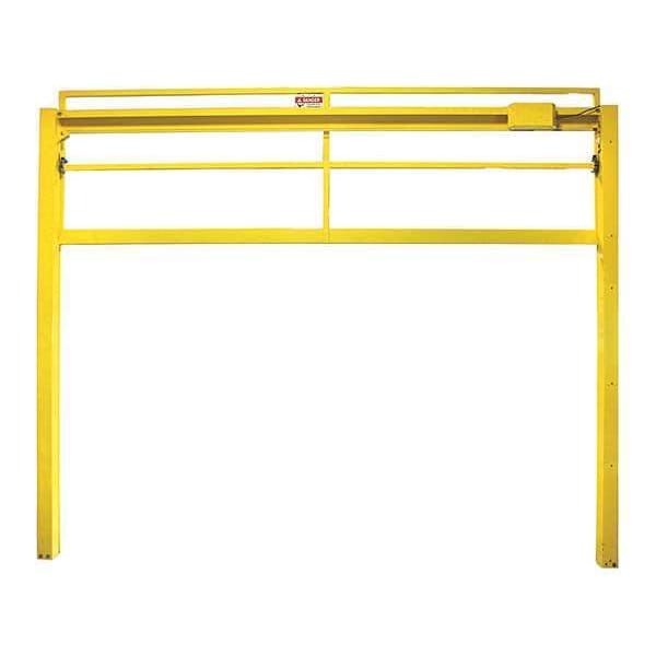Vertical Mezzanine Gate, Manual, Gate Color Yellow, Gate Material Steel, Gate Height 42 in, Gate Finish Powder Coated, Post Color Yellow, Post Material Steel, Post Finish Powder Coated, Post Height 10.5 ft, Overall Height 126 in, Overall Width 78 in, Assembled Unassembled, Lockable No, Folding Gate No, Mounting Location Deck, Opening Width 6 ft, Safety Controls Stop, Safety Guard Color Yellow, Safety Guard Material Steel, Safety Guard Finish Powder Coated, Includes Bollards No