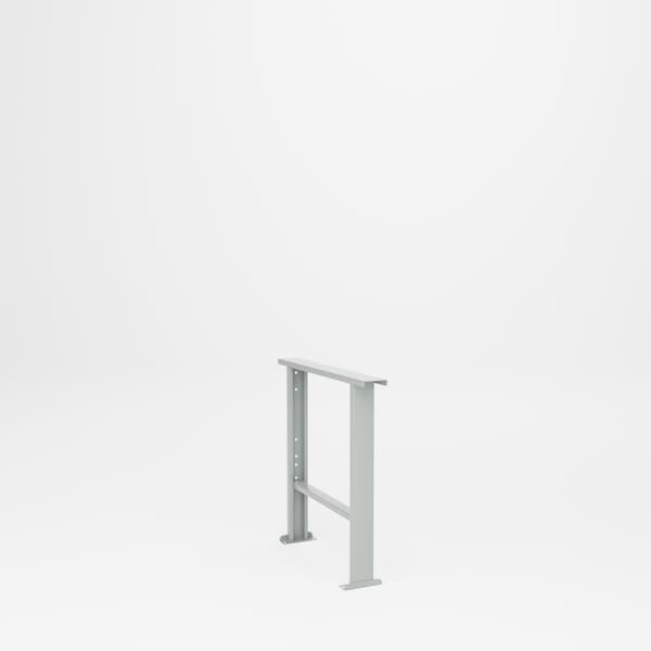 All welded steel, Bench Leg. 12 gauge bench legs for 36in D wood top workbench. Holes are provided to bolt to top and in floor pads for anchoring to floor. 34in W x 34in D x 32-1/2in H. Powder Coat finish..