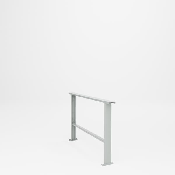 All welded steel, Bench Leg. 12 gauge bench legs for 60in D wood top workbench. Holes are provided to bolt to top and in floor pads for anchoring to floor. 58in W x 58in D x 34in H. Powder Coat finish..