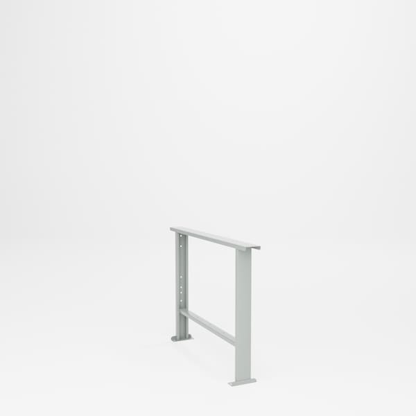 All welded steel, Bench Leg. 12 gauge bench legs for 48in D wood top workbench. Holes are provided to bolt to top and in floor pads for anchoring to floor. 46in W x 46in D x 32-1/2in H. Powder Coat finish..