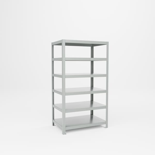 All welded steel, Extra Heavy Duty Rack with 6 Shelves. Constructed of 10 gauge posts and six-12 gauge shelves. Used for the heaviest tools, dies, and heavy material. Can be used in Dividually or bolted together in rows. No assembly required, ready to use. Foot pads on posts to protect floor. 10in shelf clearance. Capacity 1,000 lbs. per shelf. Dimensions 36in W x 24in D x 65in H. Powder Coat finish.