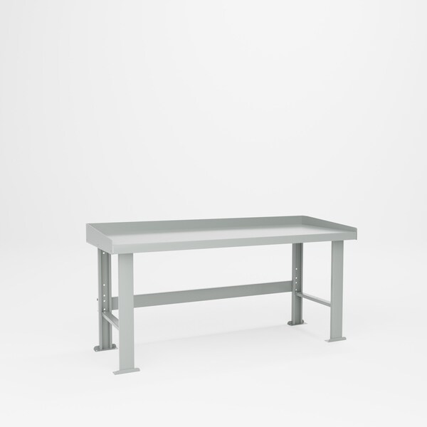 All welded steel, Heavy Duty Work Bench with Side and Back Stops. Top, legs, and side & back stops are constructed of 12 gauge steel. Stringer is 16 gauge. The top, stringer and legs are reinforced for extra strength. No assembly required. Dimensions 72in W x 28in D x 32-1/2in H. Capacity 3,000 lbs. evenly distributed. Powder Coat finish . GRAY.