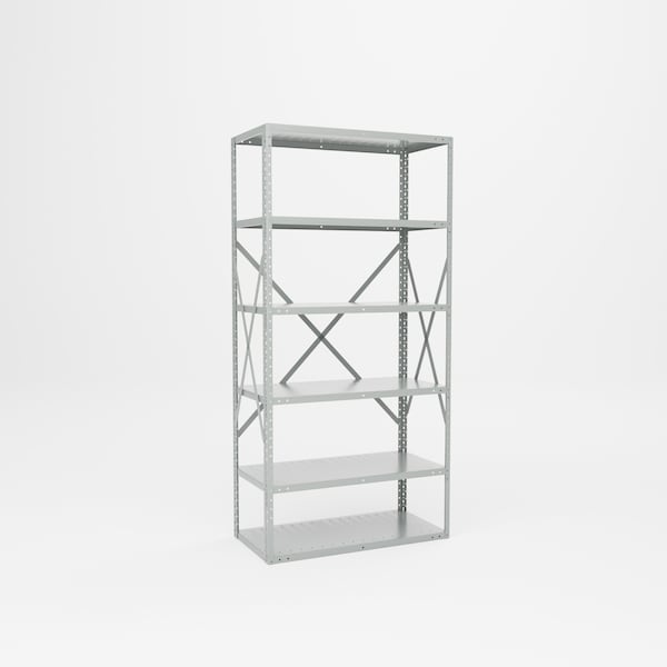 All steel, Heavy Duty Knock Down Shelf Rack. Constructed of 20 gauge steel and has a capacity of 400 lbs. per shelf. Sized perfectly to accommodate bins. Unit measures 36in W x 18in D x 73in H. Includes 6 shelves. Ships unassembled. Powder Coat finish..