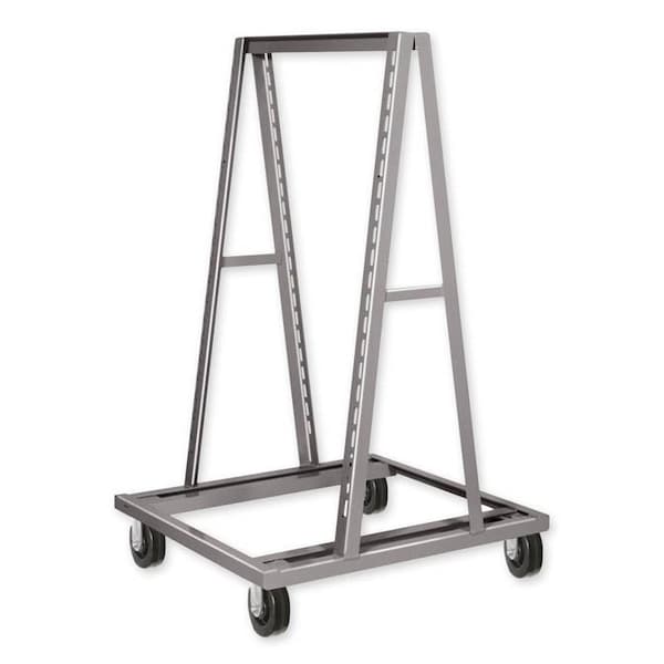 All welded steel, Heavy Duty Double Sided A-Frame Truck. Twice the capacity of the single A-Frame Truck. Angle iron frame and uprights provide a stable platform for components. Holds a variety of optional trays, hanger bars, spin Dles and brackets. 2 swivel, 2 rigid 8in x 2in mold-on rubber casters. Capacity 2,000 lbs. Dimensions 35in W x 40-1/2in D x 65-1/2in H. Powder Coat finish. GRAY.