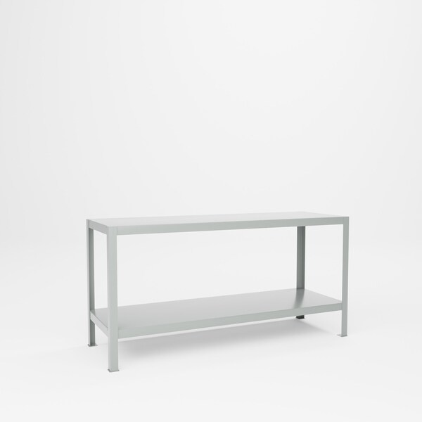 All welded steel, Extra Heavy Duty Tool Stand with 2 Shelves, for handling extremely heavy load requirements. 72in W x 24in D x 36in H. Two shelves are constructed of 12 gauge steel and are all flat. Shelf clearance is 23 1/2in H. 3/16in heavy duty steel angle is used for posts.Capacity 3,000 lbs. Powder Coat finish. GRAY.