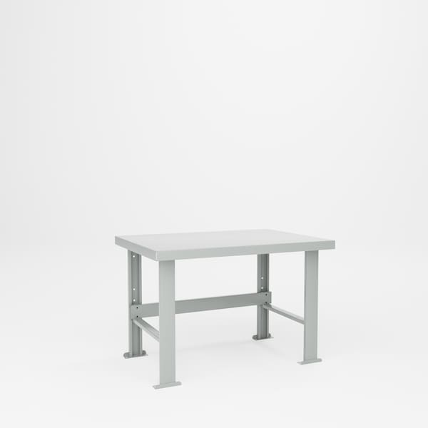 All welded steel, Heavy Duty Work Bench. Top and legs are constructed of 12 gauge steel.Stringer is 16 gauge. The top, stringer and legs are reinforced for extra strength. No assembly required. Dimensions 48in W x 34in D x 32-1/2in H. Capacity 3,000 lbs. evenly distributed. Powder Coat finish . GRAY.