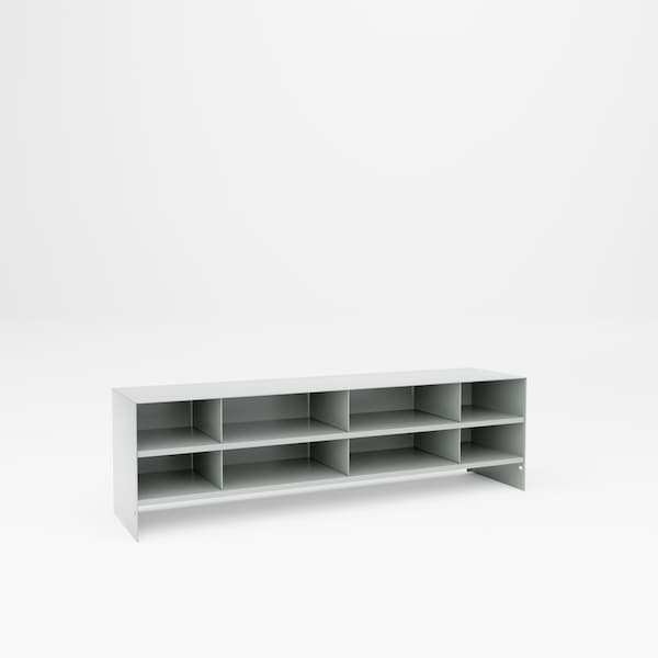 All welded steel, heavy duty Filing Cabinet Desk. Multi purpose desk features a three drawer letter size locking filing cabinet on right side, a locking center desk drawer, a bottom shelf 24in W x 20in D, and a pigeon hole unit. Clear acrylic is placed over desk top. Back and endstops included to prevent parts from rolling off. Dimensions 39in W x 28in D x 53-1/2in H; 42in H to work surface. Powder Coat finish. GRAY.