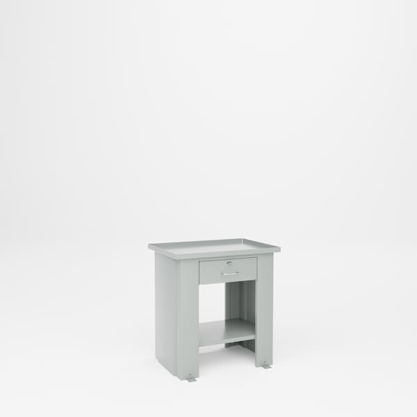 All welded steel, Heavy Duty Fluid Top Drawer Bench. Specially designed cabinets for use in "Liquid" assembly and machining. Complete with 1-1/8in tray coolant tops with 1/2in pipe connection. Floor lugs to secure base to floor. Comes with 1 drawer 14in W x 16in D x 5in H. Drawer equipped with full extension ball bearing steel slides and a small parts tray. Capacity 3,000 lbs.28in W x 20in D x 30in H. Powder Coat finish. GRAY.