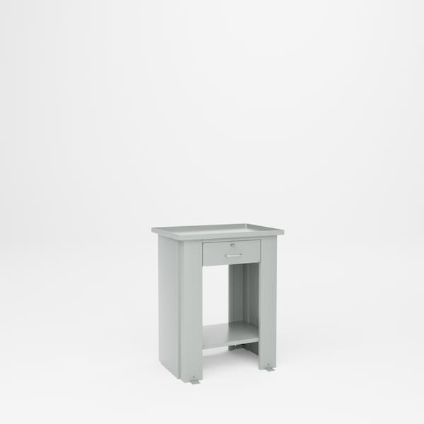 All welded steel, Heavy Duty Fluid Top Drawer Bench. Specially designed cabinets for use in "Liquid" assembly and machining. Complete with 1-1/8in tray coolant tops with 1/2in pipe connection. Floor lugs to secure base to floor. Comes with 1 drawer 14in W x 16in D x 5in H. Drawer equipped with full extension ball bearing steel slides and a small parts tray. Capacity 3,000 lbs.28in W x 20in D x 35in H. Powder Coat finish. GRAY.