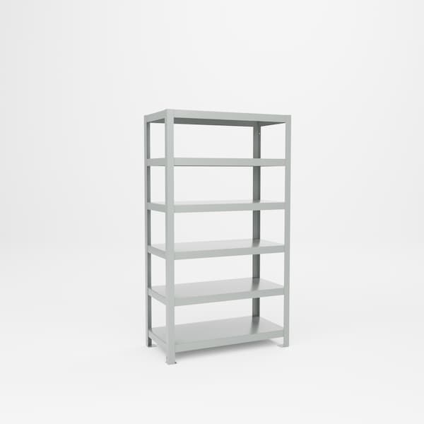 All welded steel, Extra Heavy Duty Rack with 6 Shelves. Constructed of 10 gauge posts and six-12 gauge shelves. Used for the heaviest tools, dies, and heavy material. Can be used in Dividually or bolted together in rows. No assembly required, ready to use. Foot pads on posts to protect floor. 10in shelf clearance. Capacity 1,000 lbs. per shelf. Dimensions 36in W x 18in D x 65in H. Powder Coat finish.