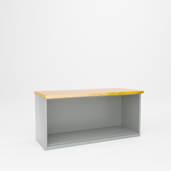 All welded steel, Heavy Duty Cabinet Workbench with Wood Top. 72in W x 30in D x 34in H.2,000 lbs capacity top surface.Powder Coat finish. GRAY.