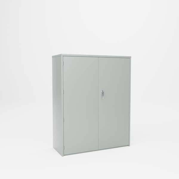 All welded steel, heavy duty storage cabinet. 48in Wide x 60in High x 19in Deep 3 adjustable shelves.3 point lock. Keyed handle.1,500 lbs.capacity per shelf. Powder Coat finish. GRAY..