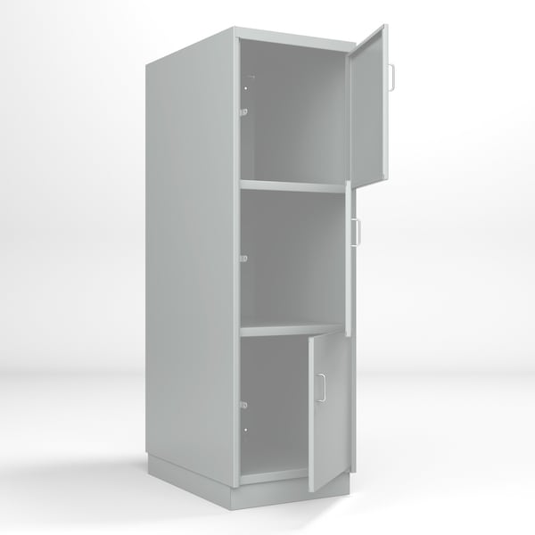 Heavy Duty Storage Locker, Three Doors, 24 in W x 36 in D x 74 in H, 4 in Base, Light Blue