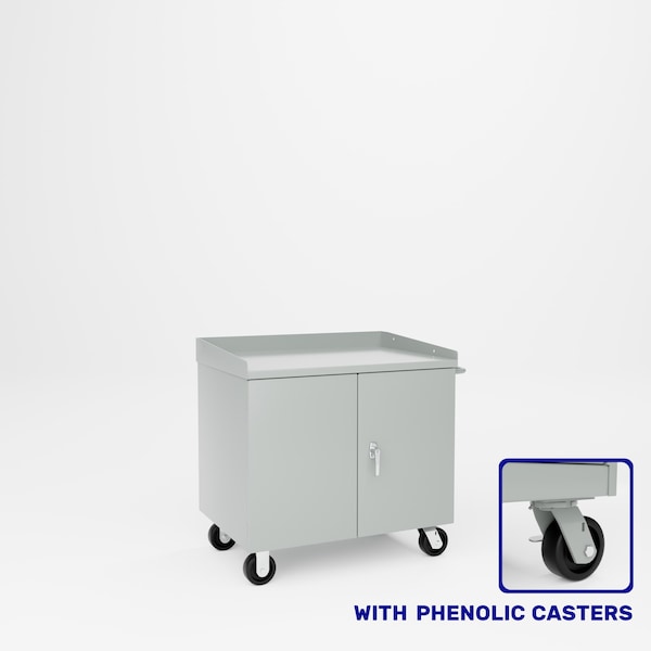 Mobile Cabinet Bench, Phenolic Casters 36 in W x 26 in D x 34 in H, Gray