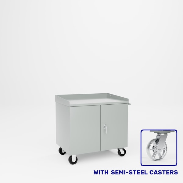 Mobile Cabinet Bench, Semi Steel Casters 36 in W x 26 in D x 34 in H, Black