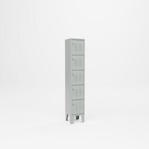 Multi Tier Locker, 12 in W x 12 in D x 60 in H, 5 Compartments, Gray