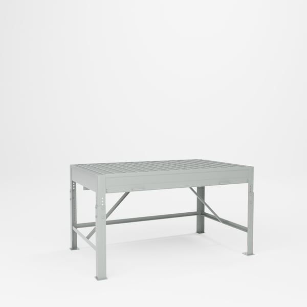 All welded steel, Heavy Duty Pro Welding Bench with Adjustable Height. Accommodates all welding processes: MIG, TIG, GMAW, SMAW, FCAW, GTAW, & brazing. Complete removable steel grating. Adjusts from 30in to 42in high to meet the needs of any welder. Convenient pull out tray for easy slag and debris removal. Constructed of all-welded 12 gauge steel with 10 gauge steel legs. No assembly required. Dimensions 60in W x 36in D x 30in to 42in H (adjustable). Capacity 3,000 lbs.Powder Coat finish.