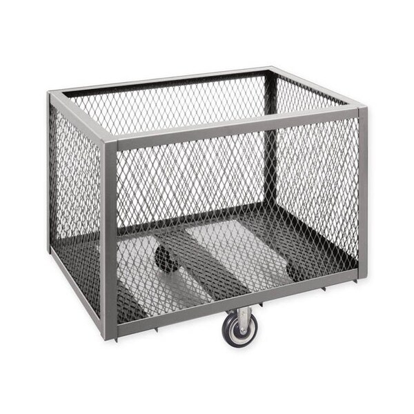 All welded steel, Heavy Duty See-Thru Box Truck. Constructed of steel mesh sides for visual inspection. Casters are mounted in a diamond pattern with 1/4in tilt. Unit turns within half of its length. 2 swivel, 2 rigid 5in x 1-1/4in polyurethane casters. Capacity 1,000 lbs. Dimensions 48in W x 30in D x 24in H. Powder Coat finish. GRAY.