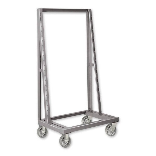 All welded steel, Heavy Duty Single Sided A-Frame Truck. Angle iron frame and uprights provide a stable platform for components. Holds a variety of optional trays, hanger bars, spin Dles and brackets. 2 swivel, 2 rigid 6in x 2in mold-on rubber casters. Capacity 1,750 lbs. Dimensions 35in W x 25in D x 65-1/2in H. Powder Coat finish. GRAY.