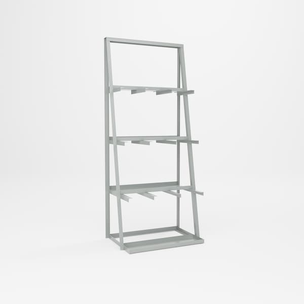 All welded steel, Heavy Duty Vertical Bar Rack. Provides storage for tubing, pipe, rods, etc. Unit Includes four 16 gauge tray shelves for short pieces. Arms extend 8in beyond each shelf for separation of stock. Extension beyond front posts is 6in, top 6 3/8in, second 10in, and third 14in. Capacity 3,000 lbs. Dimensions 36in W x 24in D x 84in H. Powder Coat finish..