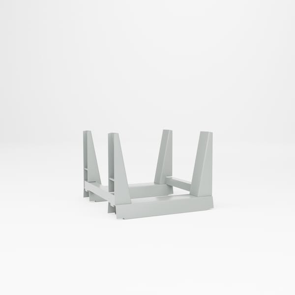 All welded steel, Heavy Duty Twin Rack-U-Frame. Fully assembled and ready to use. For maximum capacity and safety, units should be installed on a solid, smooth surface, evenly spaced 20 ft., and stacked a maximum of 4 high. Used in multiples with fork lifts, as required to provide length and tier height needed for storage. Capacity 5,000 lbs. when optimally stacked. Dimensions 24in W x 25in D x 17-1/2in H. Powder Coat finish..
