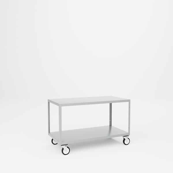 Two Shelf Mobile Table, Phenolic Casters, 48 in W x 24 in D x 30 in H, Gray
