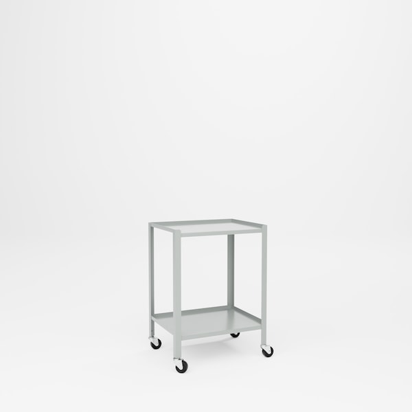 All welded steel, Heavy Duty Utility Cart with 2 Shelves. Includes back & side stops on shelves to prevent parts and other items from rolling off. 4-swivel 3in Casters. 25in W x 19in D x 34in H.Capacity 300 lbs. Powder Coat finish. GRAY.