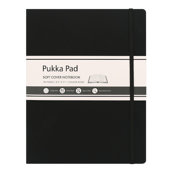 Pukka Soft Cover Notebook, Lettersize, College Ruled, Black
