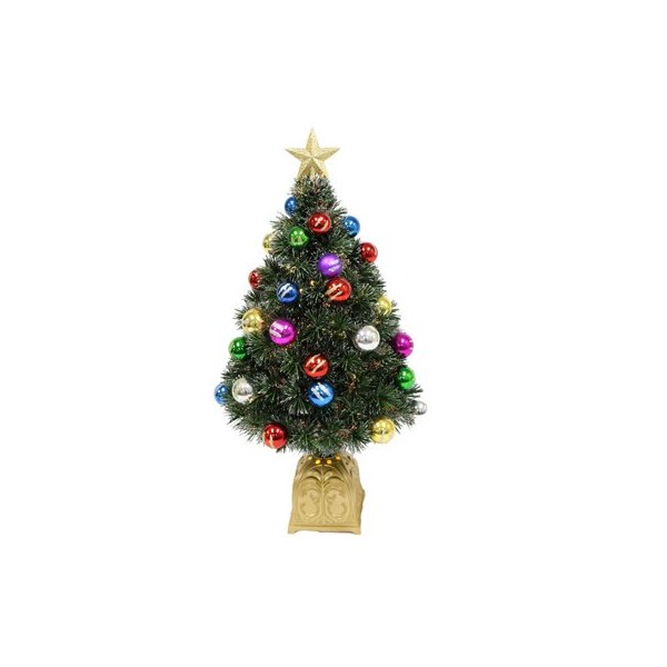 36 Fiber Optic Tree With 140 Tips 36 Pieces Colorful Decorative Ball Ornaments Plastic Gold Base With Cord & UL Listed Adapter Plug.