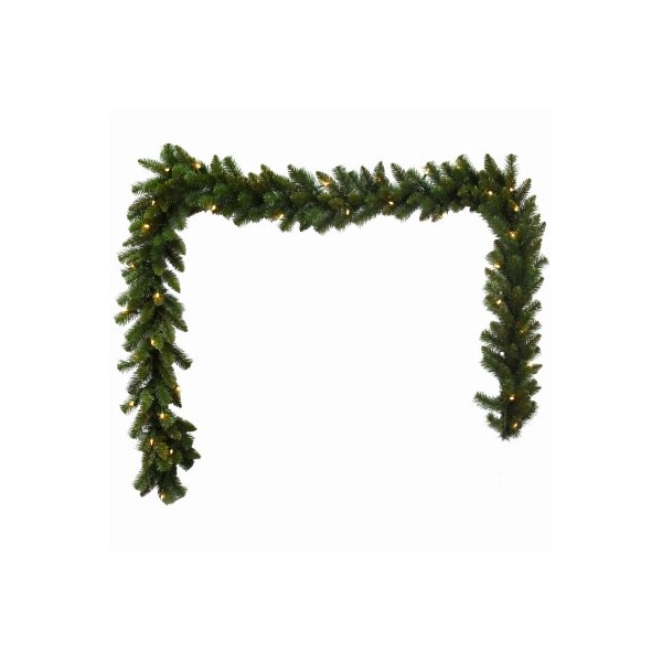 Holiday Wonderland 9 x 10 PVC Artificial Garland With 35 Clear UL Listed Incandescent Lights 200 Tips Indoor/Outdoor End Connect Plug.