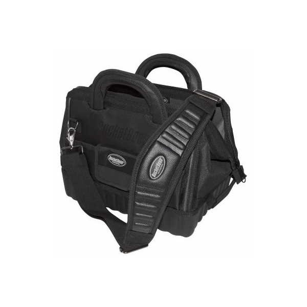 Bucket Boss, 14, Gate Mouth Bag, Heavy Duty 1680D Poly Water Resistant Main Body Fabric, Molded Waterproof Rubber Bottom, 17 Pockets 10 Exterior 7 Interior, Stay Put Handle Grips, Removable Padded Shoulder Strap, Side Pull Handles, ID Window
