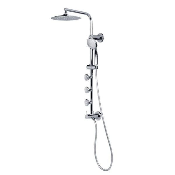 The PULSE ShowerSpas Lanai Shower System replaces your existing showerhead in minutes! multi-function hand shower, pivoting brass shower arm, slide bar body, diverter and 3 PULSE body jets. The top two body jets include an ON/OFF function to assist with hitting the perfect areas. Switch between the rain showerhead, powerspray and multi-function hand shower via the conveniently located brass diverter. The brass slide bar body allows you to position the hand shower at your desired height making this shower system perfect for all ages. The Lanai connects to the water supply at your existing showerhead location and uses your existing hot/cold shower valve. The drill-less option for the lower body mount of the Lanai makes this install easier than ever.
