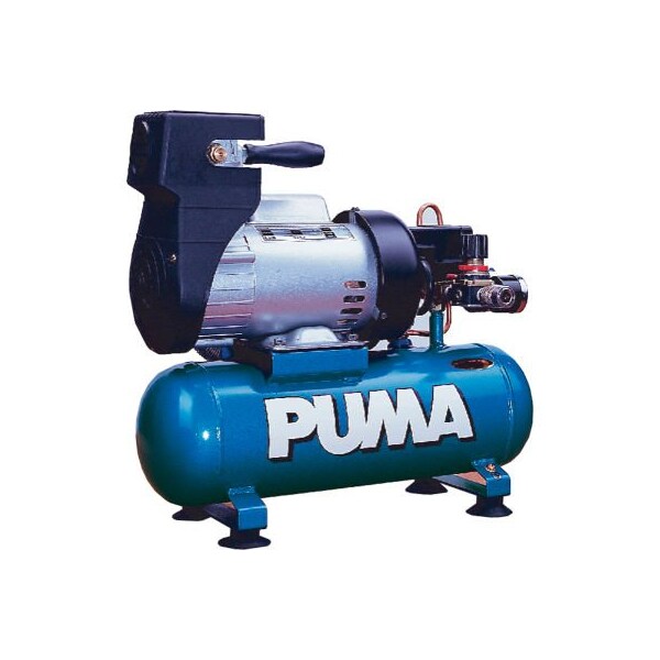Puma la5706, 1 hp, hand carry, 1.5 gallon, hot dog, 135 psi, 2.2 cfm, 1-phase 115v compact and portable design allows for easy pick or mobility oil-less models feature a patented pump design for lower noise levels and improved cooling - also means no oil to add or have to change out model is equipped with an induction motor with built in overload protection maintenance free no belts or pulleys to have to replace ideal for home or professional applications