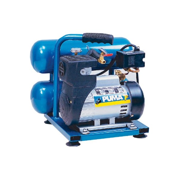 Puma la5721, 1 hp, hand carry, 2 gallon, twin stack, 135 psi, 2.2 cfm, 1-phase 115v compact and portable design allows for easy pick or mobility oil-less models feature a patented pump design for lower noise levels and improved cooling - also means no oil to add or have to change out model is equipped with an induction motor with built in overload protection maintenance free no belts or pulleys to have to replace ideal for home or professional applications