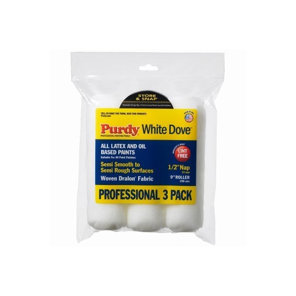 White Dove 3 Pack 1/2 Roller Cover For All Latex & Oil Based Paints Flat Eggshell & Satin Finishes Semi Smooth To Semi Rough Surfaces Most Durable Roller Cover Exclusive Blend Of Nylon & Polyester Fabric Perfect For Large Projects As It Can Take Wear & Tear While Providing Consistent Coverage & Great Final Appearance.