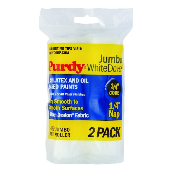 The Purdy WhiteDove mini roller cover works well with all paints and exterior stains, especially where a smooth, lint free finish is desired. This mini roller cover is the most lint free roller cover and are double vacuumed for a smooth uniform finish every time.