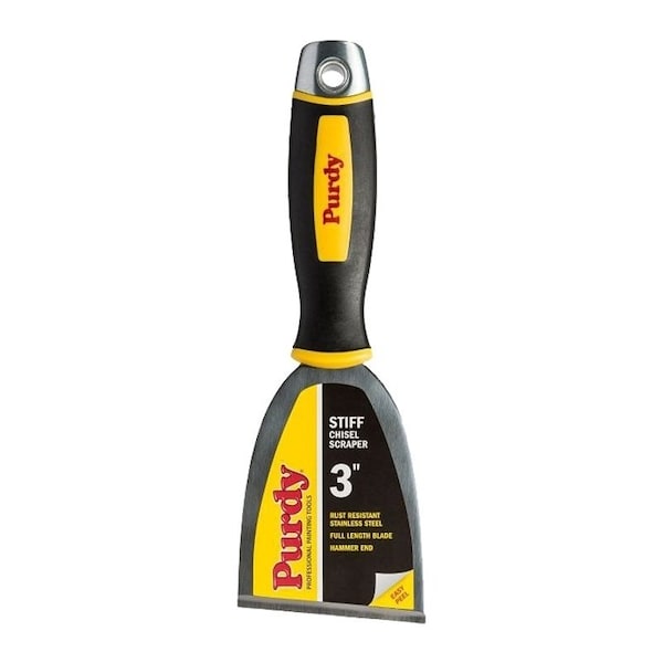 Chisel Scraper, 3 in W Blade, Angled, Stiff Blade, Stainless Steel Blade, Rubber Handle