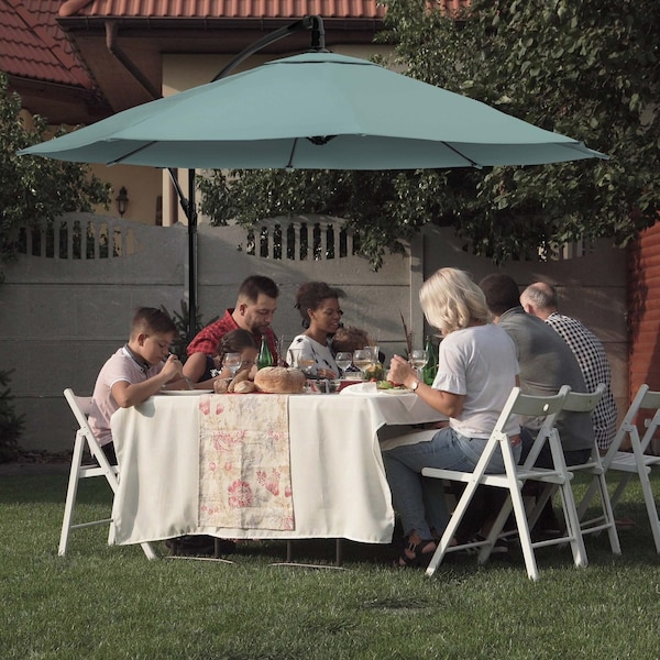 10 Ft Offset Umbrella with Cross Base, Dusty Green