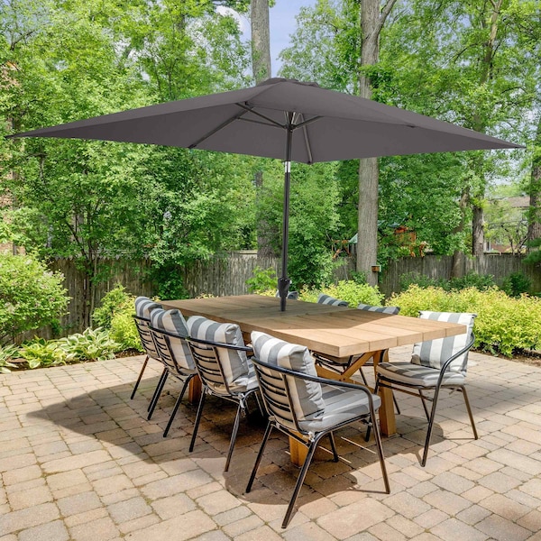 The Sun Umbrella Outdoor Patio Shade by Pure Garden is an attractive piece of outdoor dcor that provides quality sun protection whether youre entertaining guests on the deck or lounging by your swimming pool. The easy-to-use hand crank opens and closes the pool umbrella in seconds while the convenient push button tilt feature blocks angled sunlight, so you can relax in the shade even as the sun moves over the course of a hot summer day. This durable patio canopy is made with fade-resistant polyester fabric, steel ribs, and a sturdy steel pole that fits patio tables or umbrella bases designed for poles with a 1.5-inch diameter. The pole is composed of two sections which are easy to store and carry, allowing you to quickly install or disassemble the rectangular market umbrella with the press of a button.IMPORTANT: Pure Garden is committed to providing the consumer with the absolute best price and value on all of our products. NOTE: This is an exclusive product of Pure Garden and ONLY Patio Umbrellas by Pure Garden are GUARANTEED to be genuine. Avoid buying counterfeit products and transacting with unauthorized sellers. Pure Garden is a registered trademark protected by U.S. Trademark law and will be vigorously defended.