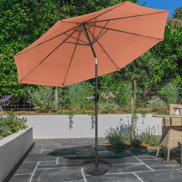 10Ft Outdoor Tilting Umbrella and Base, Terracotta
