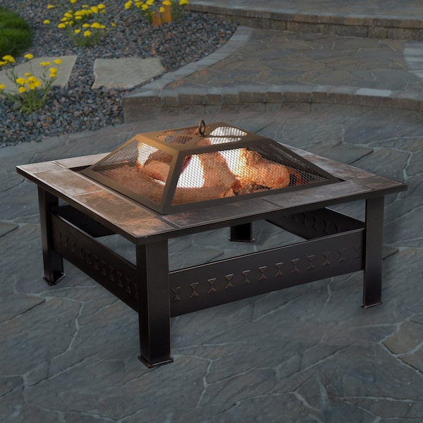 The 6-Piece Fire Pit Table Set by Pure Garden has an attractive marbled tile edge and a powder-coated bronze finish that is sure to become a focal point of your patio or deck. This firepit table for outside features a removable fire bowl, a log grate that allows ashes to drop, a handy log poker, a weather-resistant PVC cover, and a matching spark screen so you can safely burn wood at a city bonfire or in a backyard. This portable and low maintenance tabletop fireplace can help you create lasting memories with family and friends while enjoying a warm, ambient atmosphere.IMPORTANT: Pure Garden is committed to providing the consumer with the absolute best price and value on our entire line of products. NOTE: This is an exclusive product of Pure Garden and ONLY Fire Pits and Outdoor Fireplaces by Pure Garden are GUARANTEED to be genuine. Avoid buying counterfeit products and transacting with unauthorized sellers.