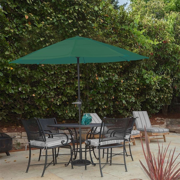 Stay cool and relaxed on hot, sunny days in the backyard, on a deck, or beside your pool by seeking shade underneath this attractive 9-Foot Patio Umbrella with Easy Crank by Pure Garden. Made of durable polyester fabric, this hunter green umbrella has a vented canopy for better airflow and is designed to fit picnic tables or outdoor table sets that seat four to six people. The large backyard umbrella features an easy-to-use hand crank handle to smoothly open or close the canopy in seconds to block sunlight and a sturdy steel pole with eight ribs to ensure it stays upright on rainy, windy days when placed in a weighted stand not included.IMPORTANT: Pure Garden is committed to providing the consumer with the absolute best price and value on our entire line of products. NOTE: This is an exclusive product of Pure Garden and ONLY Patio Umbrellas & Shades by Pure Garden are GUARANTEED to be genuine. Avoid buying counterfeit products and transacting with unauthorized sellers.