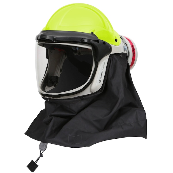 ESM+ PF60 PAPR, Hi-Viz Yellow Hard Hat, INT/EXT Switch, HE filter, Black Stedprene Neck Cape