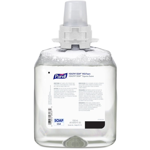 Hand Soap, Color Clear, Form Foam, Product Type Hand Soap, Series CS4, Container Size 1,250 mL, Container Type Cartridge, Fragrance Fragrance Free, Hygiene Properties Biodegradable, Dye-Free, Hypoallergenic, Moisturizing, Paraben-Free, Includes Grit No, Number of Pumps Included Not Applicable, Manufacturer Dispenser Part Number 5130-01, 5134-01, 5534-01, Requires Dispenser Yes, Includes Not Applicable, Standards EcoLogo Certified UL 2784, USDA Biobased, Application Hand Cleanser, NSF Rating E1