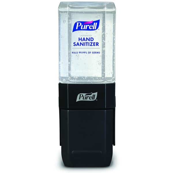 Hand Sanitizer Dispenser Starter Kit, Color Black, Mount Type Wall, Product Type Hand Sanitizer Dispenser, Material ABS Plastic, Series ES1, Finish Plastic, Compatible Manufacturer Part Number 4450-06, Refill Size 450 mL, Operation Mode Manual, Power Source Not Applicable, Batteries Included Not Applicable, Overall Depth 5 7/8 in, Overall Height 5 3/4 in, Overall Width 3 1/8 in, Counter Hole Diameter Not Applicable, Maximum Countertop Thickness Not Applicable, Spout Length Not Applicable