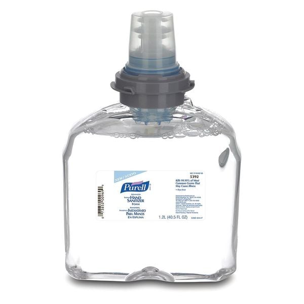 Hand Sanitizer, Form Foam, Formula Ethyl Alcohol, Container Type Cartridge, Container Size 1,200 mL, Fragrance Fruity, Requires Dispenser Yes, Series TFX(TM), Number of Pumps Included Not Applicable, NSF Rating Not Rated, Manufacturer Dispenser Part Number 2720-12, 2780-12, 2790-12-EEU00, Color Clear, Product Type Hand Sanitizer, Standards FDA, Application Food Processing, Healthcare, Alcohol Content 70 Percent