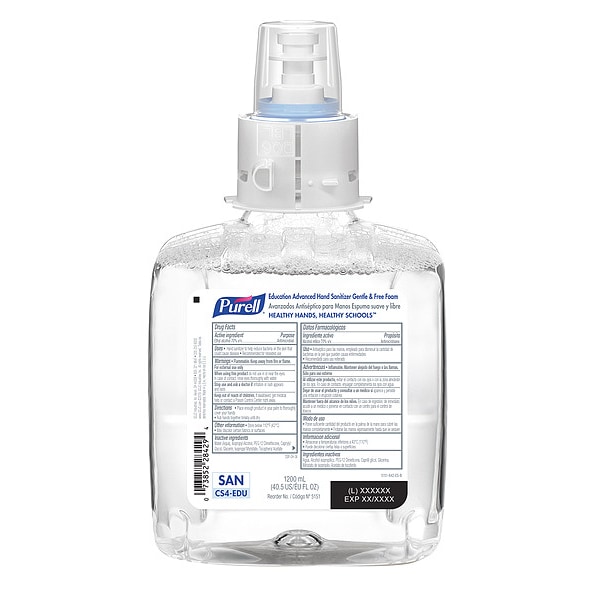 Hand Sanitizer, Form Foam, Formula Ethyl Alcohol, Container Type Cartridge, Container Size 1,200 mL, Fragrance Fragrance Free, Requires Dispenser Yes, Series FMX-12(TM), Number of Pumps Included Not Applicable, Manufacturer Dispenser Part Number 5110-01, Color Clear/Yellow, Product Type Hand Sanitizer, Ligature Resistant No, Package Quantity 4