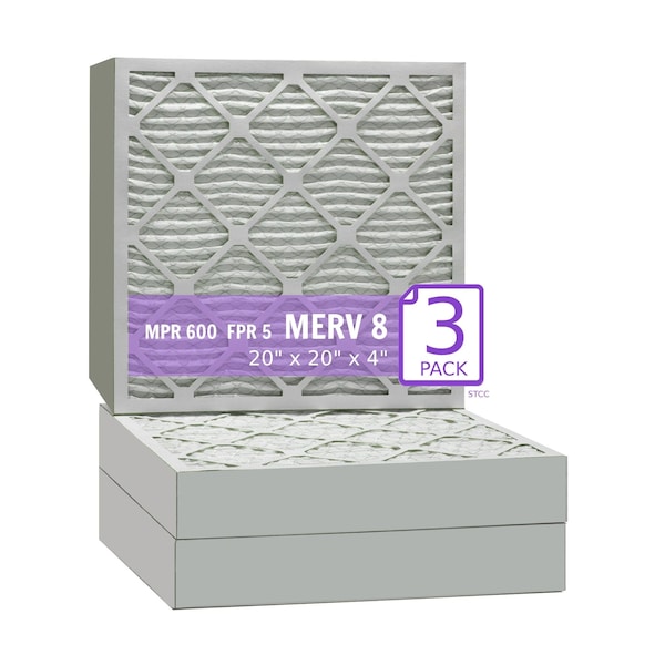 20x20x4 Pleated Air Filter, MERV 8, 3 PK