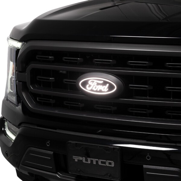 Emblems, Licensed FORD Logo; Grille; White; Matte Black; IP69K Rated; Oval Shape; With Plug And